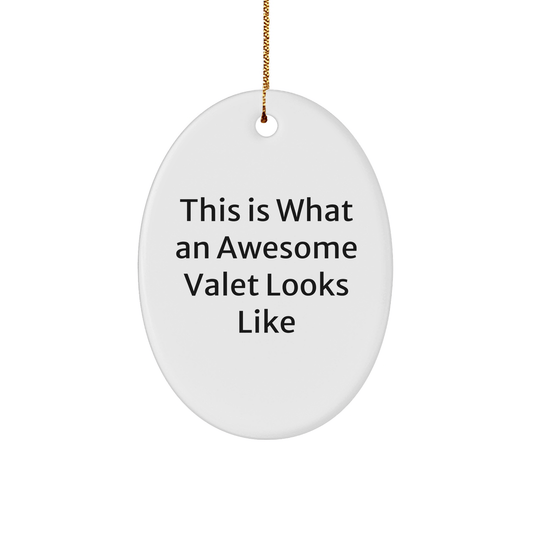 Funny Valet Gifts from Friends this Christmas, Oval Ornament Quote says 'This Is What An Awesome Valet Looks Like', Perfect for Men, Women, or Family