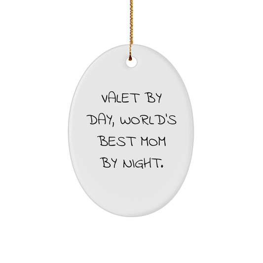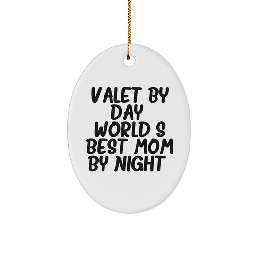Valet Gifts by Day, World's Best Mom by Night Oval Ornament, Funny Quote, Christmas Unique Gift for Friends, Family, Coworkers