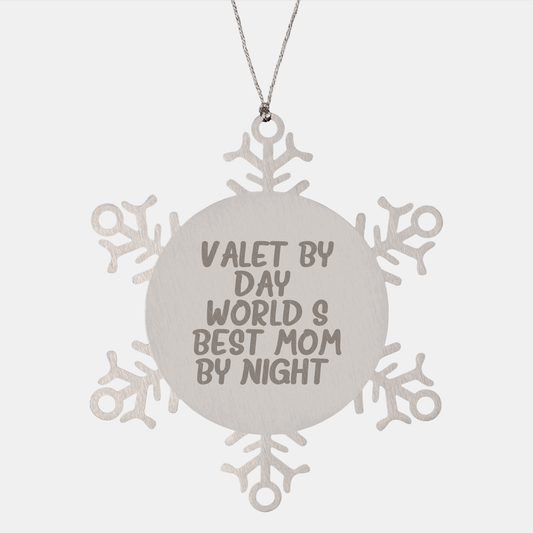 Valet Gifts from Women, Snowflake Ornament for Christmas, 'Valet By Day, World's Best Mom By Night.' Quote Funny