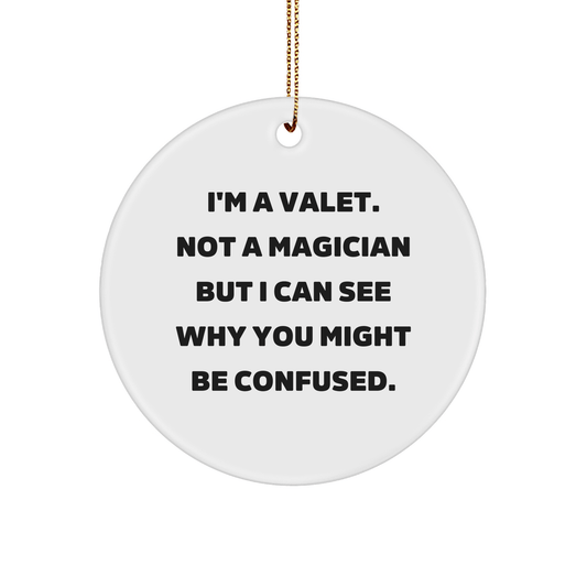 Valet Gifts from Friends - Funny Circle Ornament, I'm A Valet. Not A Magician But I Can See Why You Might Be Confused. Gifts for Valet