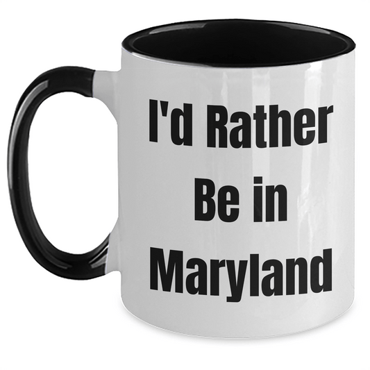 Funny Maryland Gifts I'd Rather Be In Maryland Two Tone Coffee Mugs for Graduation from Friends, Family, or Coworkers