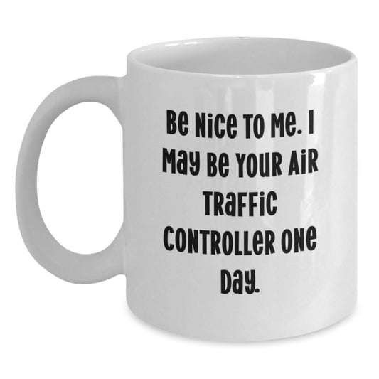 Funny Air Traffic Controller White Coffee Mug Gifts from Friends for Air Traffic Controller Graduation, 'Be Nice To Me. I May Be Your Air Traffic Controller One Day.'