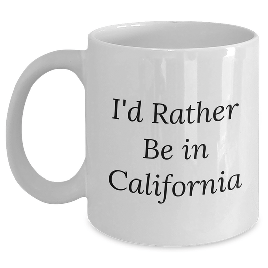 California Dreams White Coffee Mug, I'd Rather Be In California Funny Quote Gifts for Men, Women, Friends, Family on Graduation