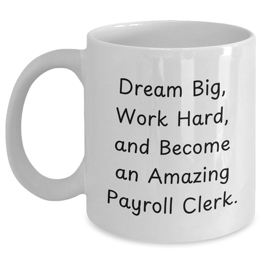 Funny Payroll Clerk Gifts - 'Dream Big, Work Hard' White Coffee Mug for Graduation from Family, Friends, or Coworkers