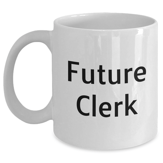 Funny Quote Clerk Gifts for Men from Future Clerk - White Coffee Mug - Graduation Unique Gifts