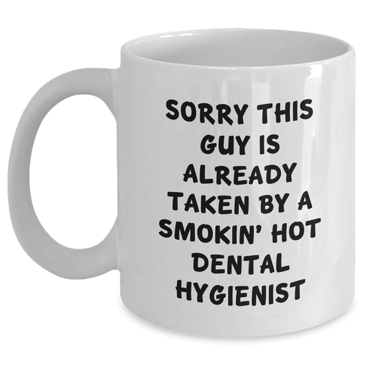 Funny Dental Hygienist Gift for Men, White Coffee Mug, Sorry This Guy Is Already Taken By A Smokin' Hot Dental Hygienist, Gifts from Men to Dental Hygienist, Father's Day Unique Gifts