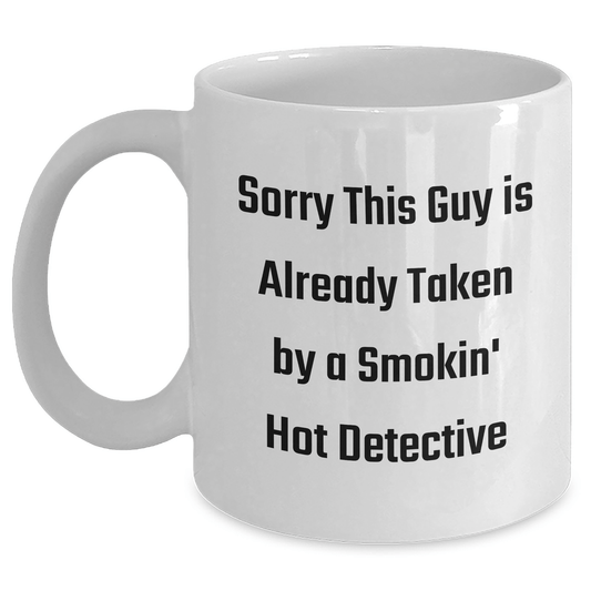 Funny Detective White Coffee Mug, Sorry This Guy Is Already Taken By A Smokin' Hot Detective, Gifts from Family for Father's Day