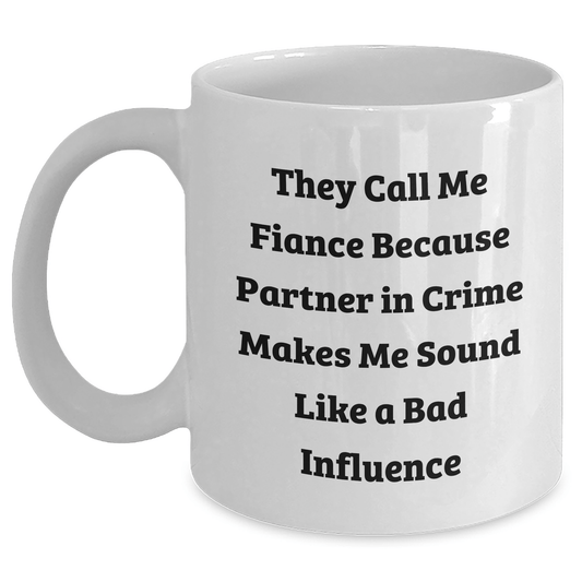 Funny Fiance Gifts from Men to Fiance on Graduation - They Call Me Fiance Because Partner In Crime Makes Me Sound Like A Bad Influence, White Coffee Mug, 11oz or 15oz