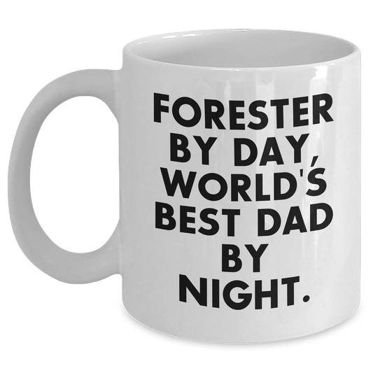 Forester's Humorous White Coffee Mug, Gifts from Family for Forester, World's Best Dad By Night, Unique Father's Day