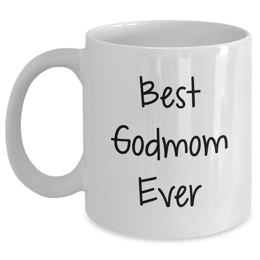 Funny Gifts from Men to Godmom, 'Best Godmom Ever' White Coffee Mug for Mother's Day, 11oz or 15oz Capacity, Ceramic, Microwave, Dishwasher Safe Gifts for Godmoms