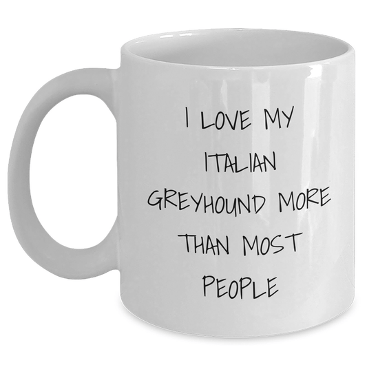 Italian Greyhound Dog Lover Gifts from Family - 'I Love My Italian Greyhound More Than Most People' Funny White Coffee Mug