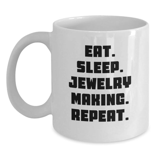 Funny Jewelry Making Gifts from Friends to Family - Eat. Sleep. Jewelry Making. Repeat. White Coffee Mug