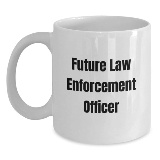 Funny Future Law Enforcement Officer Graduation Gifts from Friends for Law Enforcement Officer White Coffee Mug, 11oz or 15oz Capacity, Ceramic, Microwave, and Dishwasher Safe