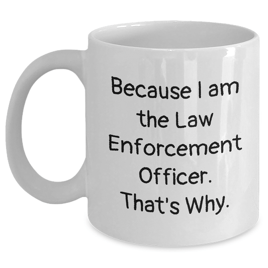 Funny Law Enforcement Officer Gifts, White Coffee Mug 'Because I Am The Law Enforcement Officer. That's Why.' for Dad on Father's Day, Gifts from Men, Gifts for Law Enforcement Officer