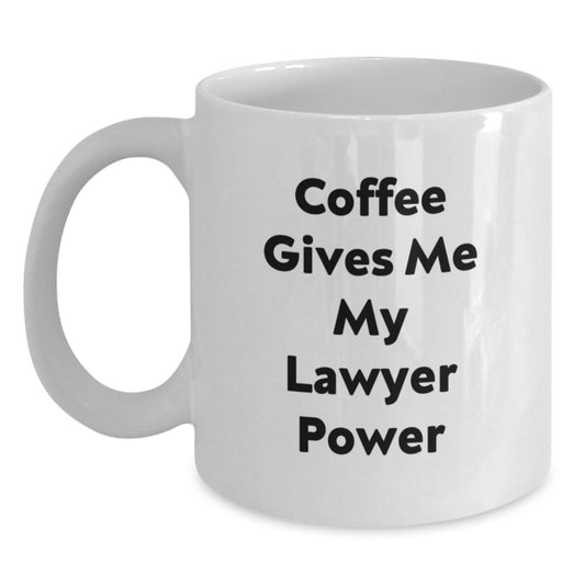 Funny Lawyer Gifts Coffee Mug White, 'Coffee Gives Me My Lawyer Power' Birthday Ideas for Men, Women, Coworkers