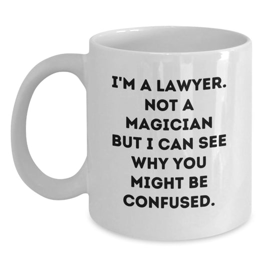 Funny Lawyer Gifts from Men, White Coffee Mugs for Lawyer Graduation, I'm A Lawyer. Not A Magician But I Can See Why You Might Be Confused, Unique Lawyer Gifts