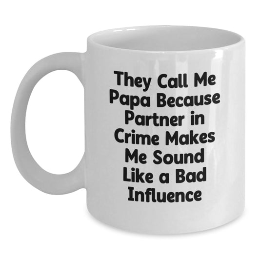 Funny Papa Gifts from Friends and Family - They Call Me Papa Because Partner In Crime Makes Me Sound Like A Bad Influence - White Coffee Mug for Papa Birthday