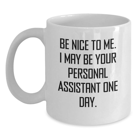 Funny Personal Assistant Gifts for Graduation - Be Nice To Me White Coffee Mug from Friends
