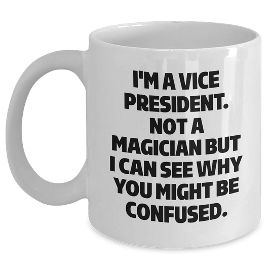 Vice President Gifts Funny Mug, I'm Not A Magician White Coffee Mug, Unique Graduation Gifts from Friends, Family or Coworkers to Vice President