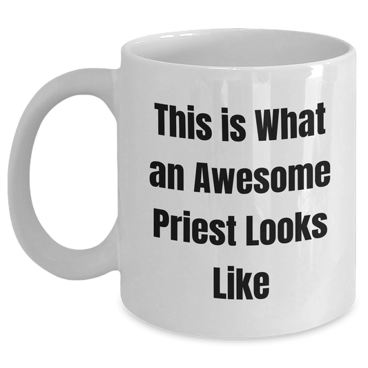 Funny Priest Gifts from Friends on Father's Day - White Coffee Mug, 11oz or 15oz, Ceramic, Microwave & Dishwasher Safe, 'This Is What An Awesome Priest Looks Like'