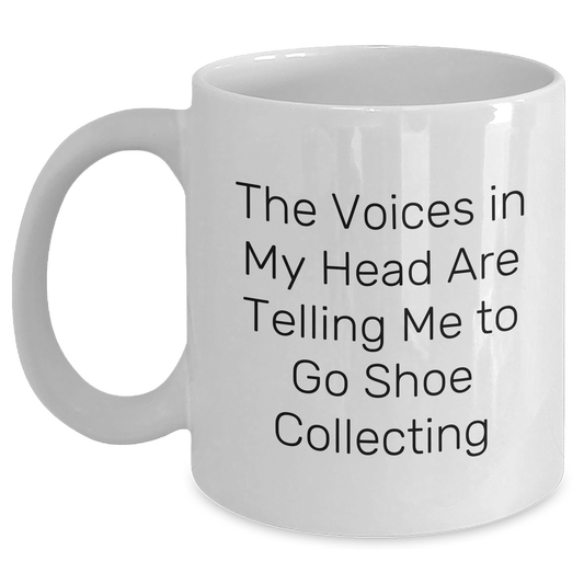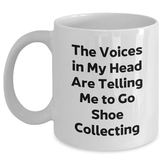 Funny Shoe Collecting Gifts for Men from Friends - White Coffee Mug with 'The Voices In My Head Are Telling Me To Go Shoe Collecting' Quote, Gifts for Shoe Collecting Enthusiasts