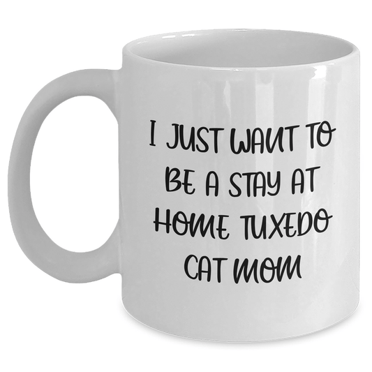 Funny Tuxedo Cat Mom Gifts from Dad for Father's Day - White Coffee Mug, 'I Just Want To Be A Stay At Home Tuxedo Cat Mom'
