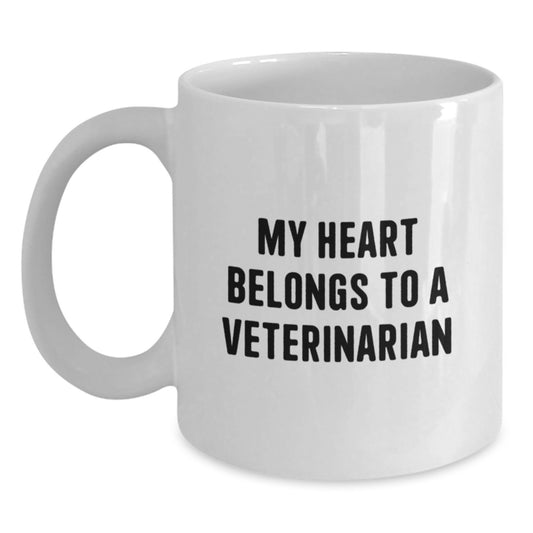 Veterinarian Gifts Funny Coffee Mug, 'My Heart Belongs To A Veterinarian' Quote, White Ceramic 11oz or 15oz, Gifts from Friends to Veterinarians, Birthday Unique Gifts