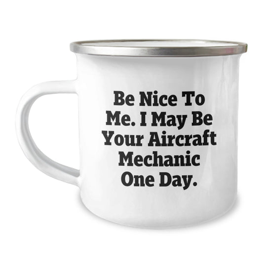 Funny Aircraft Mechanic Gifts for Him, Unique Two Tone Coffee Mugs for Christmas, Be Nice To Me. I May Be Your Aircraft Mechanic One Day. from Friends