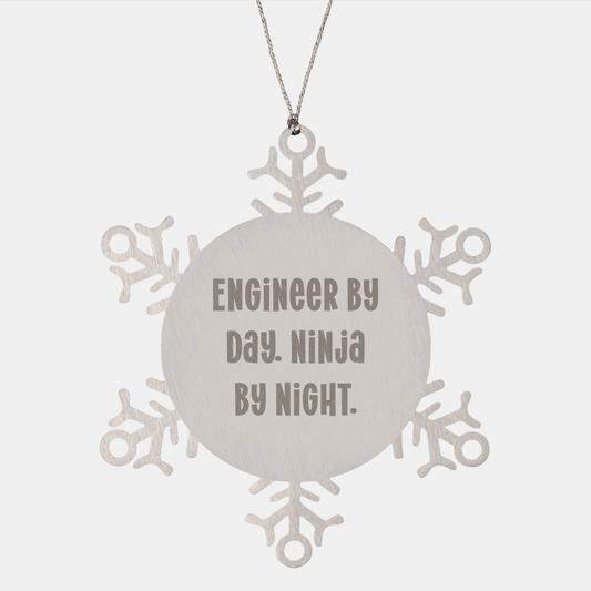 Regalos de ingenieros para hombres: Ingeniero de día, Ninja de noche. Adorno de copo de nieve, adornos navideños únicos para ingenieros, hombres, amigos y familiares.