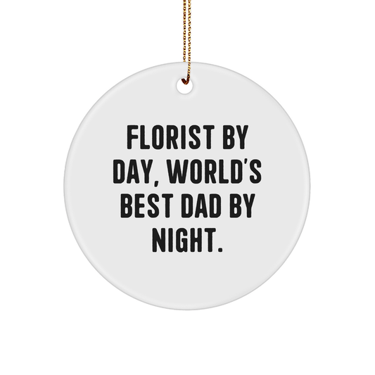 Regalos divertidos de floristería para hombres, adorno circular con la frase "Florista de día, el mejor papá del mundo de noche", regalos navideños únicos para familiares, amigos y compañeros de trabajo.