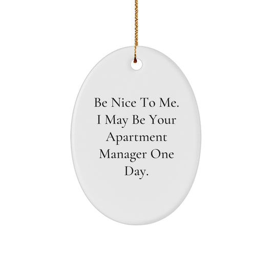 Funny Apartment Manager Gifts for Men, Funny Oval Ornament 'Be Nice to Me' - Christmas Unique Gifts from Friends and Family for Apartment Manager