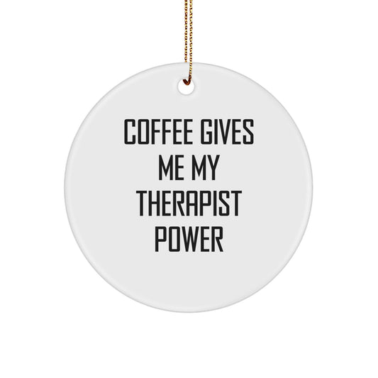Regalos divertidos para terapeutas de amigos: Adorno circular "El café me da mi poder de terapeuta" para Navidad - Regalos para terapeutas