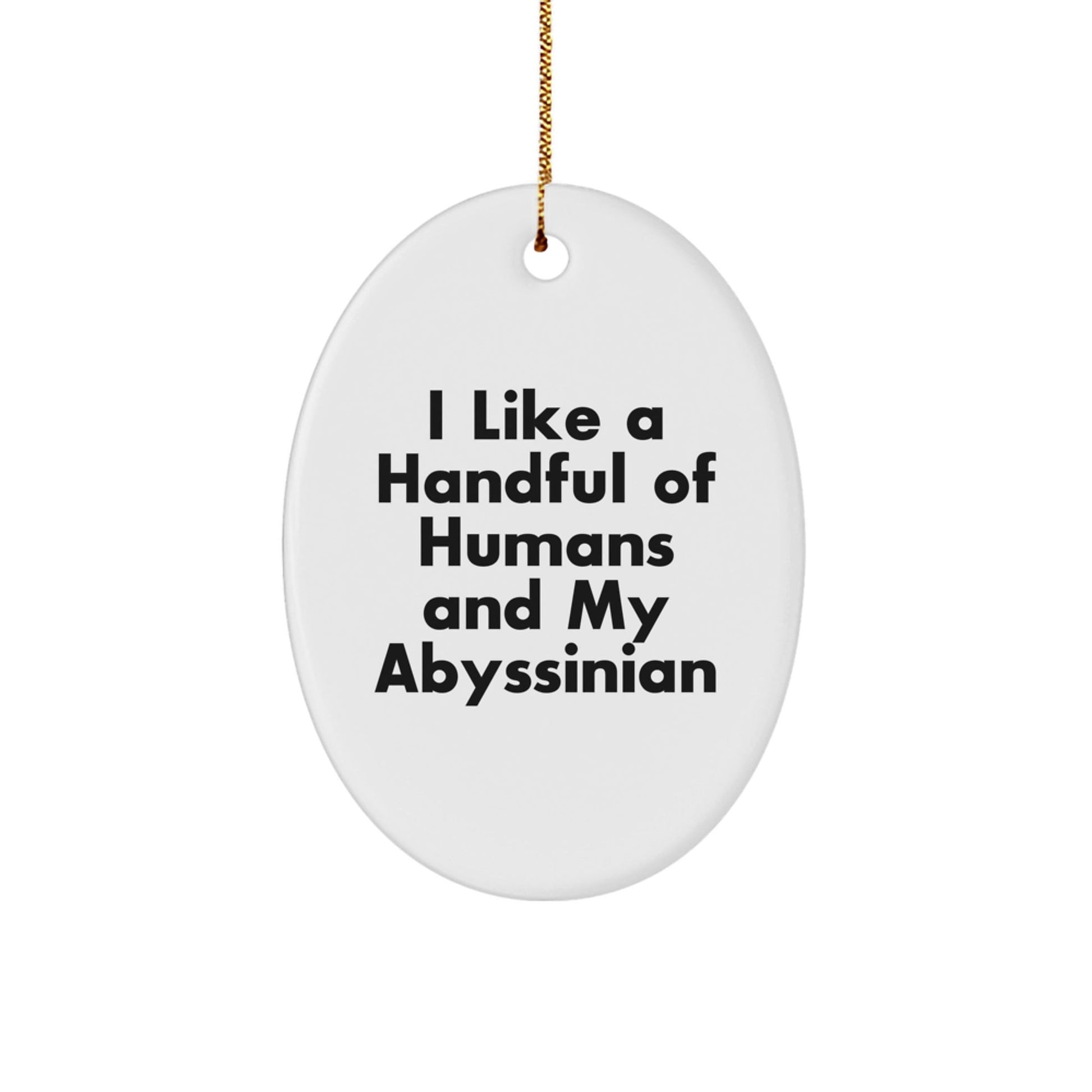 - Agregue un toque de elegancia a la decoración de su hogar con este exclusivo adorno ovalado, que presenta la cita 'Me gustan un puñado de humanos y mi abisinio': el regalo ideal para cualquier amante de los gatos abisinios.