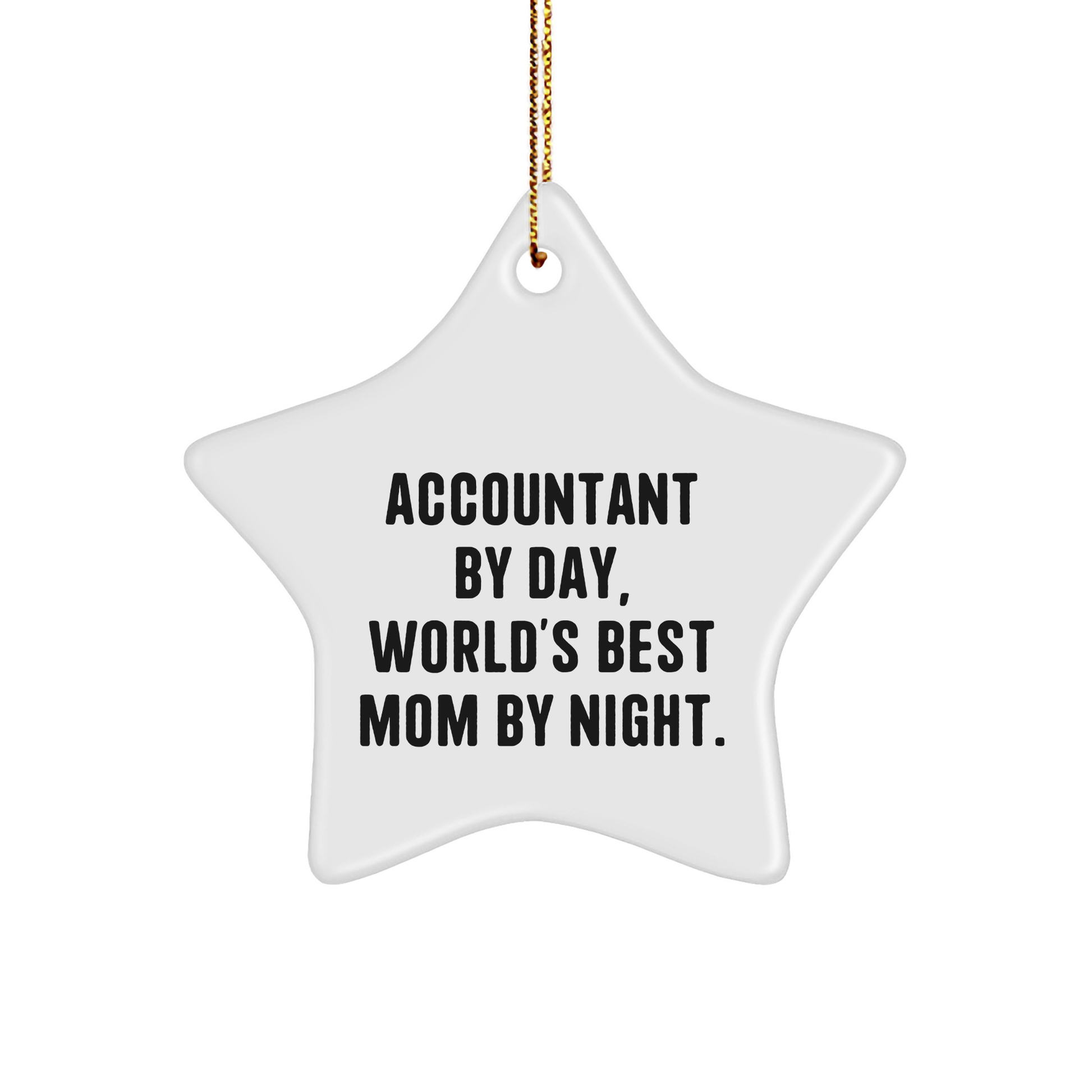 - Este divertido adorno de estrella "Contadora de día, la mejor mamá del mundo de noche" es el regalo ideal para la contable de tu vida. Fabricado en MDF resistente con un acabado plástico de alto brillo, este adorno es ligero y resistente a las roturas, lo que lo convierte en una excelente opción para hogares con niños o mascotas.