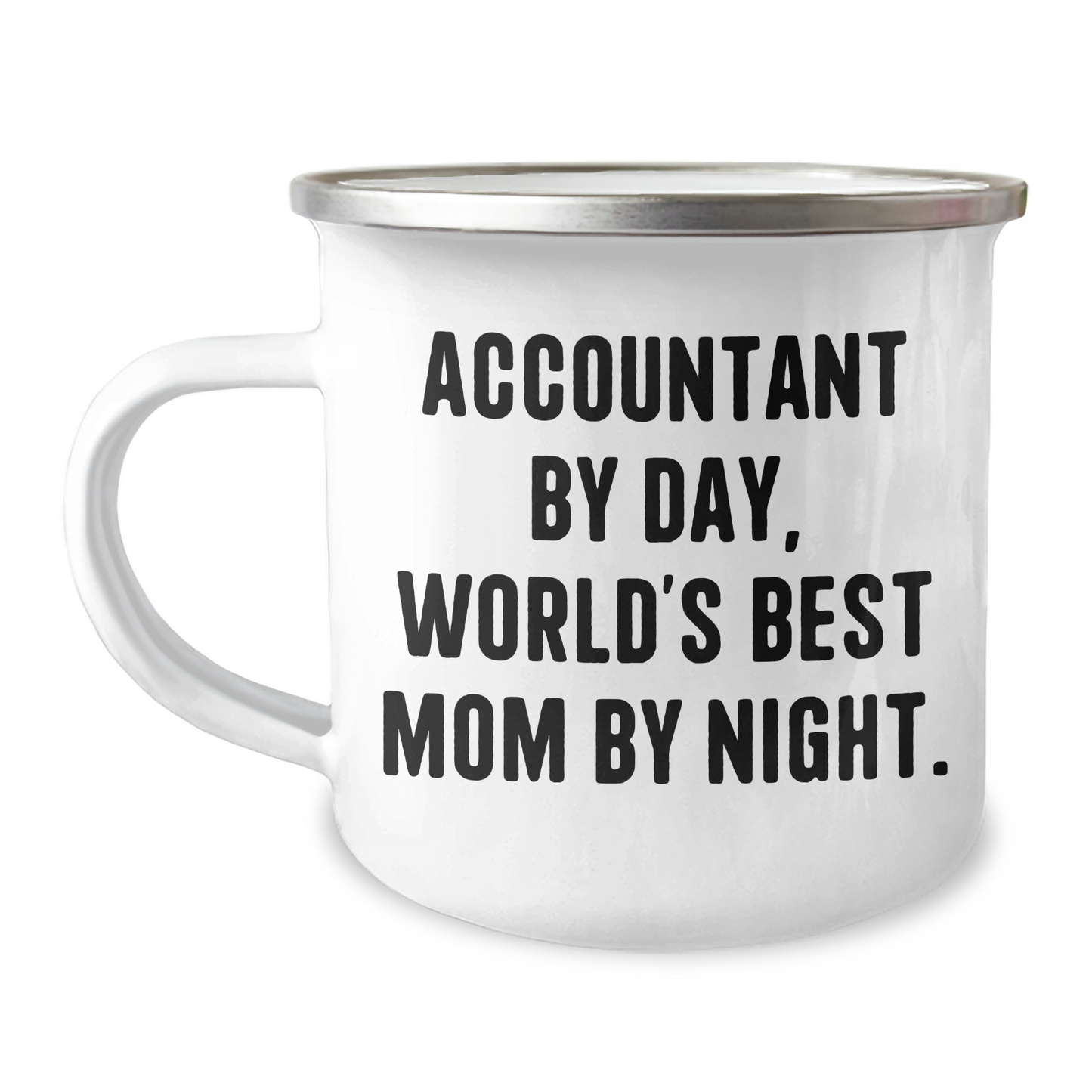 - Haz que este Día del Padre sea inolvidable para el contador de tu vida con nuestra exclusiva taza de camping "Contador de día, la mejor mamá del mundo de noche". Perfecta para su café de la mañana o su té de la tarde, esta taza de acero inoxidable de 355 ml con acabado esmaltado está hecha para durar y cuenta con una impresión permanente que no se desvanece con los lavados.
