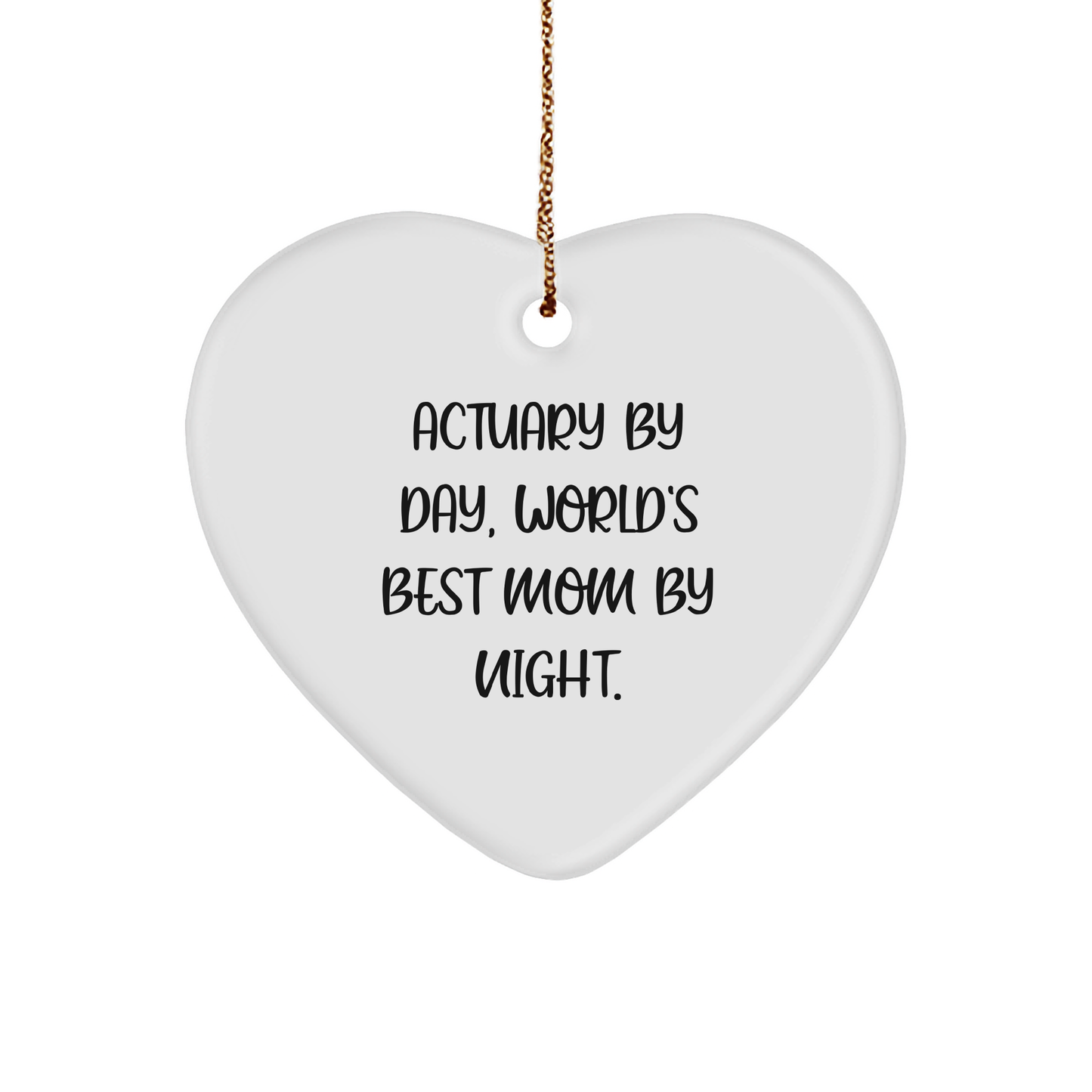 - Haga un regalo considerado para cualquier actuario en su vida con nuestro divertido adorno de corazón, que presenta la cita "Actuario de día, la mejor mamá del mundo de noche" en un lado y una forma de corazón en el otro.