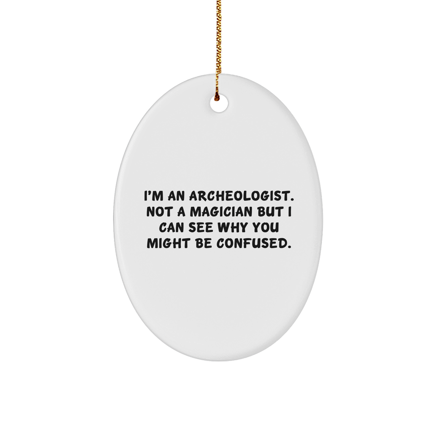 ¿Eres arqueólogo o conoces a alguien que lo sea? ¡No busques más! Este adorno ovalado incluye una cita que seguro le sacará una sonrisa: «Soy arqueólogo. No mago, pero entiendo por qué podrías estar confundido».