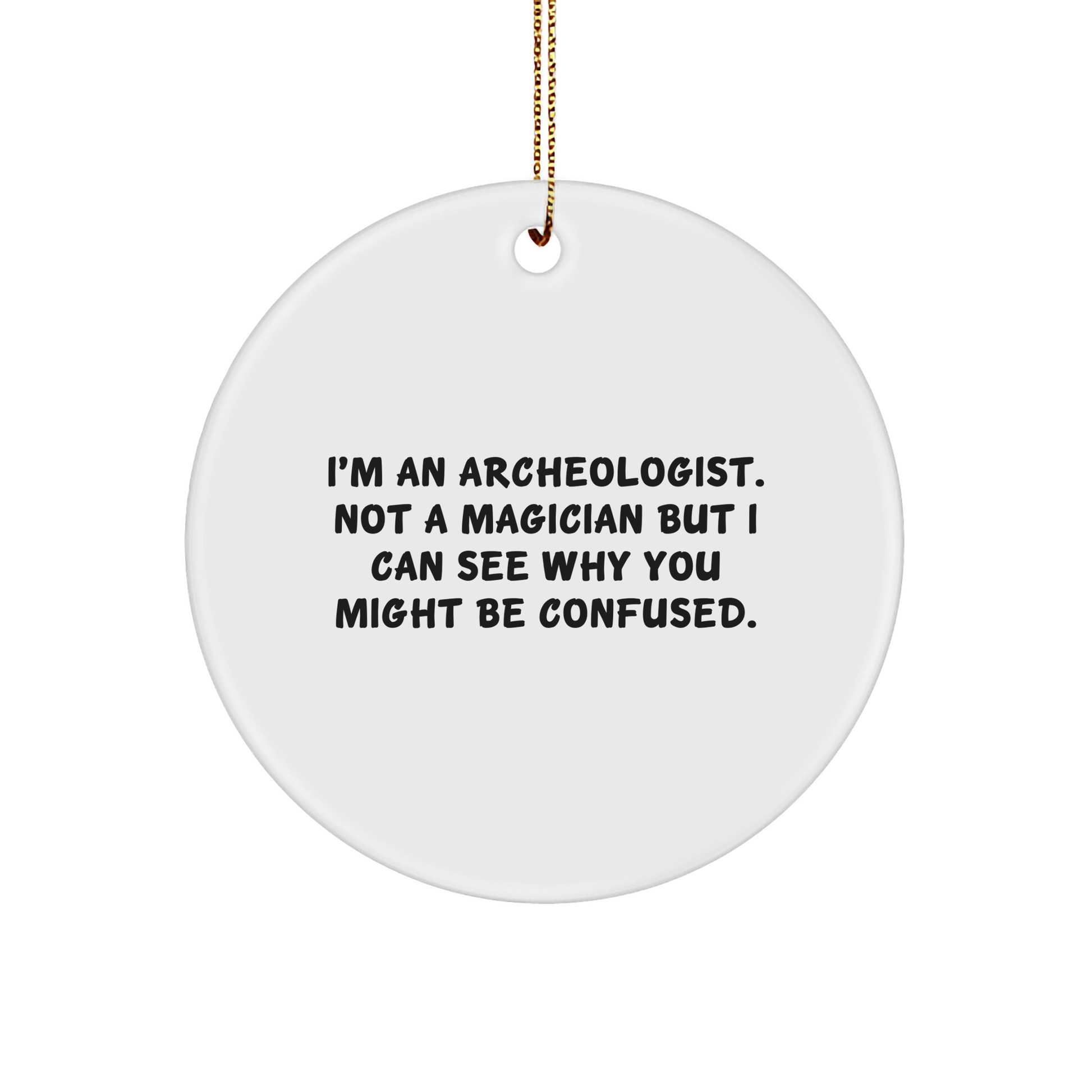 - ¿A qué esperas? Consigue hoy mismo tu adorno circular «Soy arqueólogo. No mago, pero entiendo por qué podrías estar confundido» y haz que esta Navidad sea inolvidable.