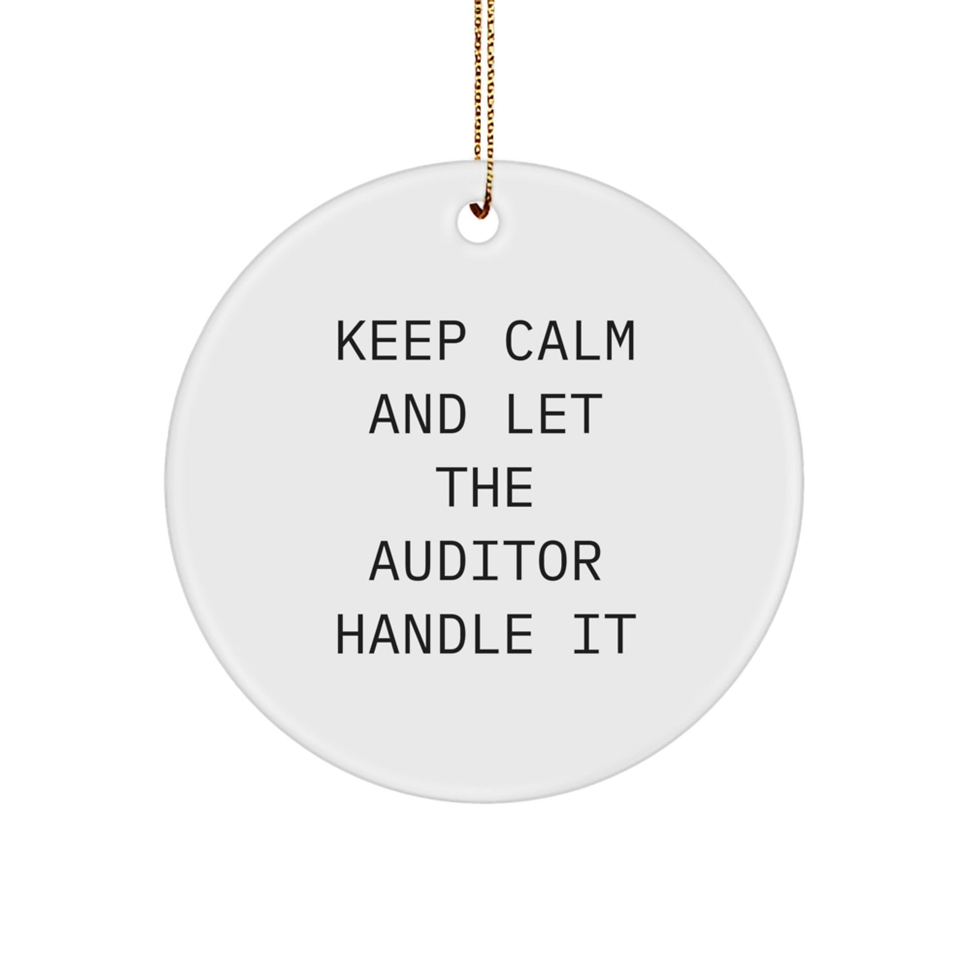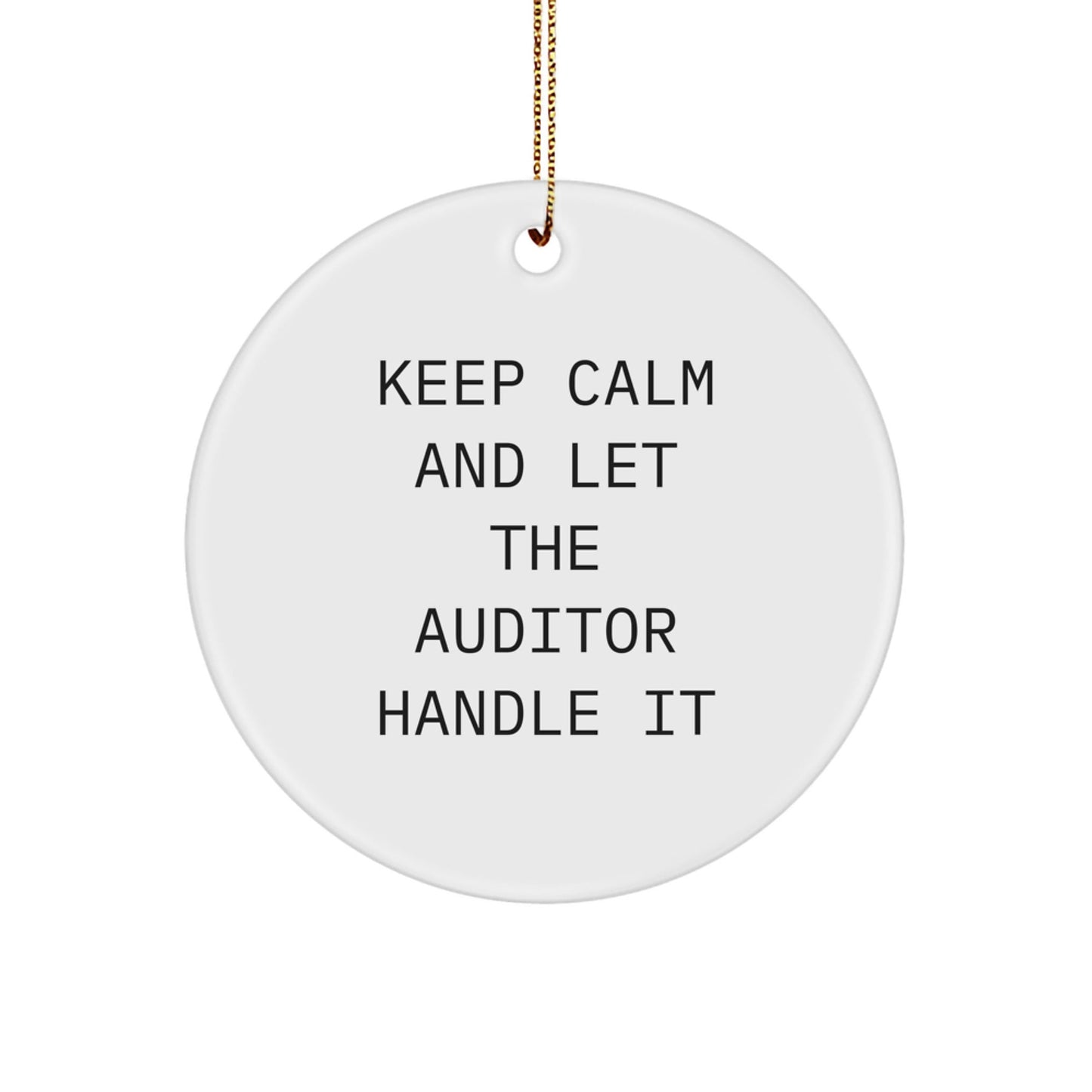 - No te lo pierdas y prepárate para compartir alegría navideña con nuestro adorno circular "Mantén la calma y deja que el Auditor se encargue". Un regalo ideal para cualquier ocasión; seguro que será un éxito con el Auditor de tu vida.