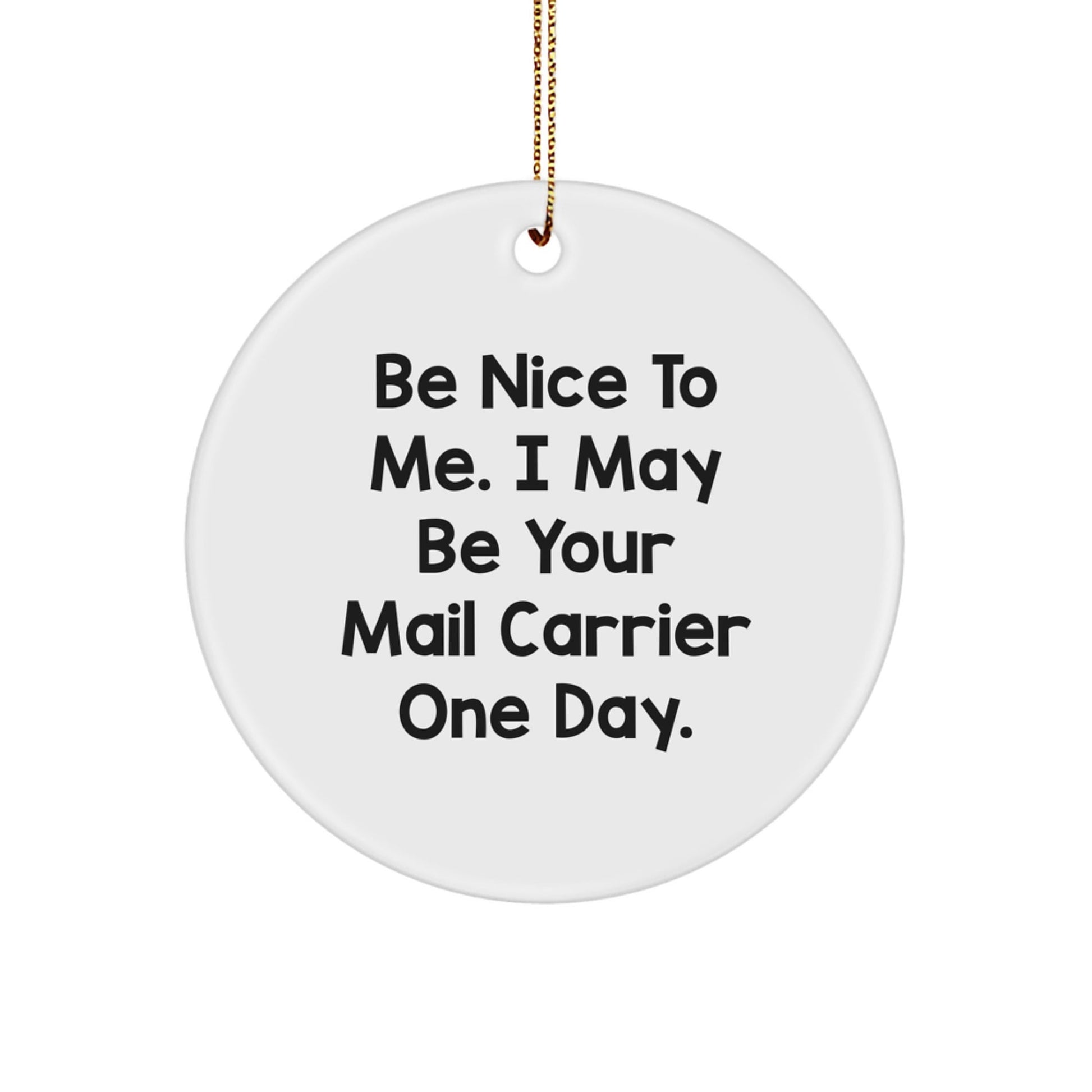 - La frase "Sé amable conmigo. Quizás sea tu cartero algún día" está impresa en este adorno, lo que lo convierte en una excelente manera de mostrar tu agradecimiento por su arduo trabajo.