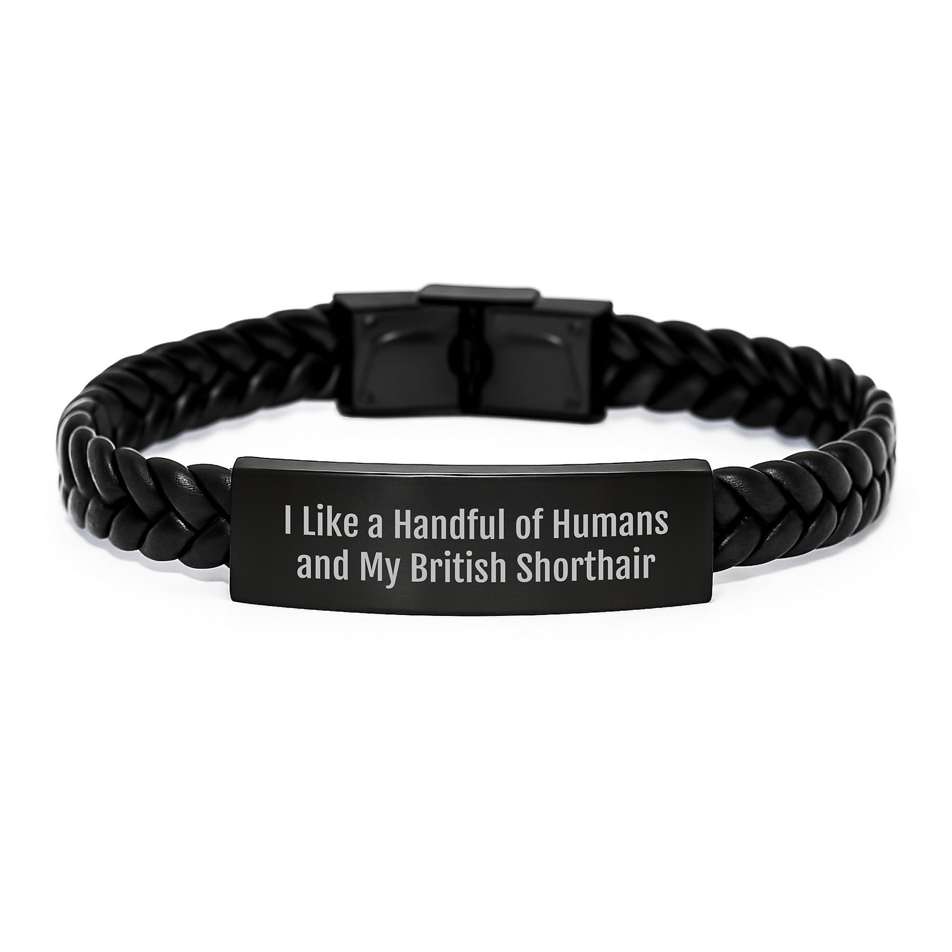 - Descubra el accesorio perfecto para el amante de los gatos británicos de pelo corto en su vida con nuestra pulsera de cuero entrelazada, diseñada para parecerse a los llamativos patrones de pelaje de esta majestuosa raza ('I Like A Handful Of Humans And My British Shorthair').
