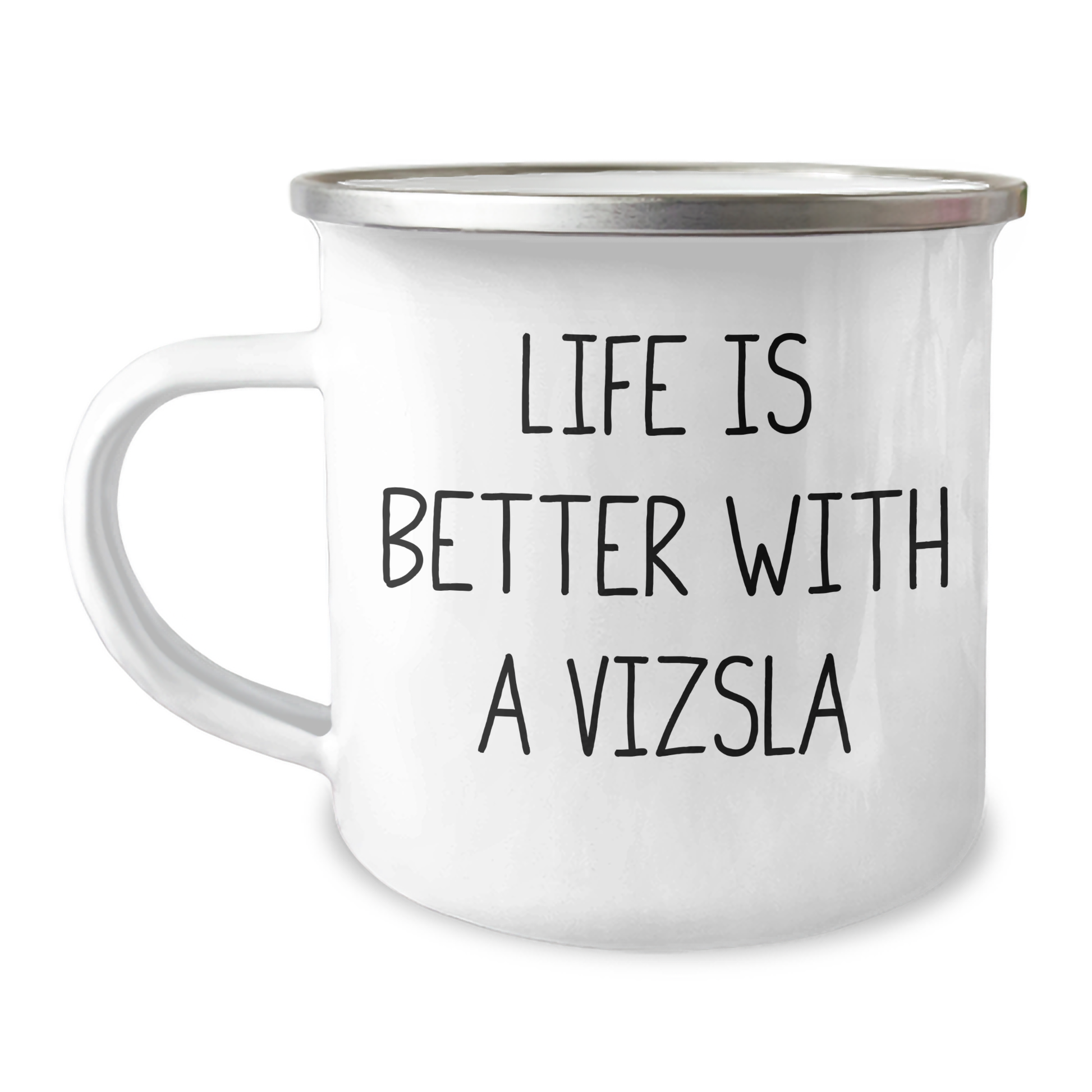 Ya seas familiar, amigo o compañero de trabajo, esta taza de camping es una excelente manera de demostrar tu aprecio y consideración. Con su diseño único y su divertida frase, es un regalo que atesorarás durante años. Así que, ¡anímate a regalarle a tu amante de los Vizsla una taza de camping que lo dice todo: «La vida es mejor con un Vizsla»!