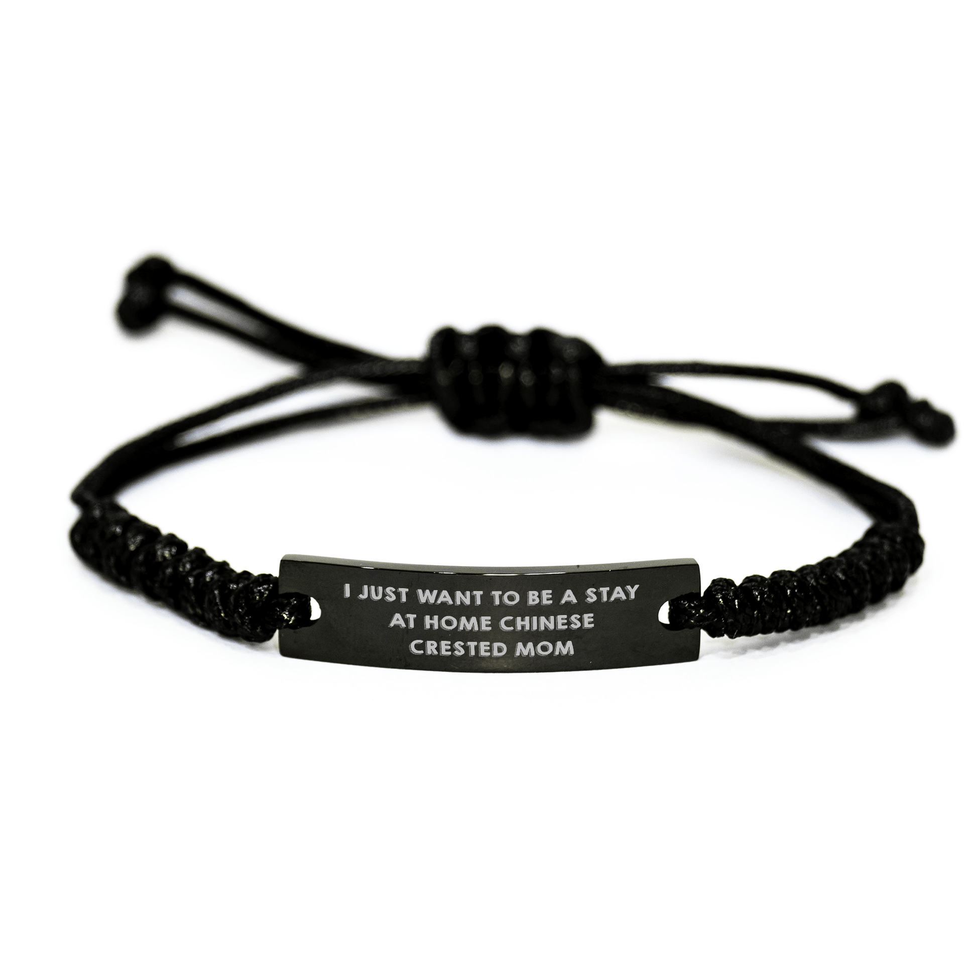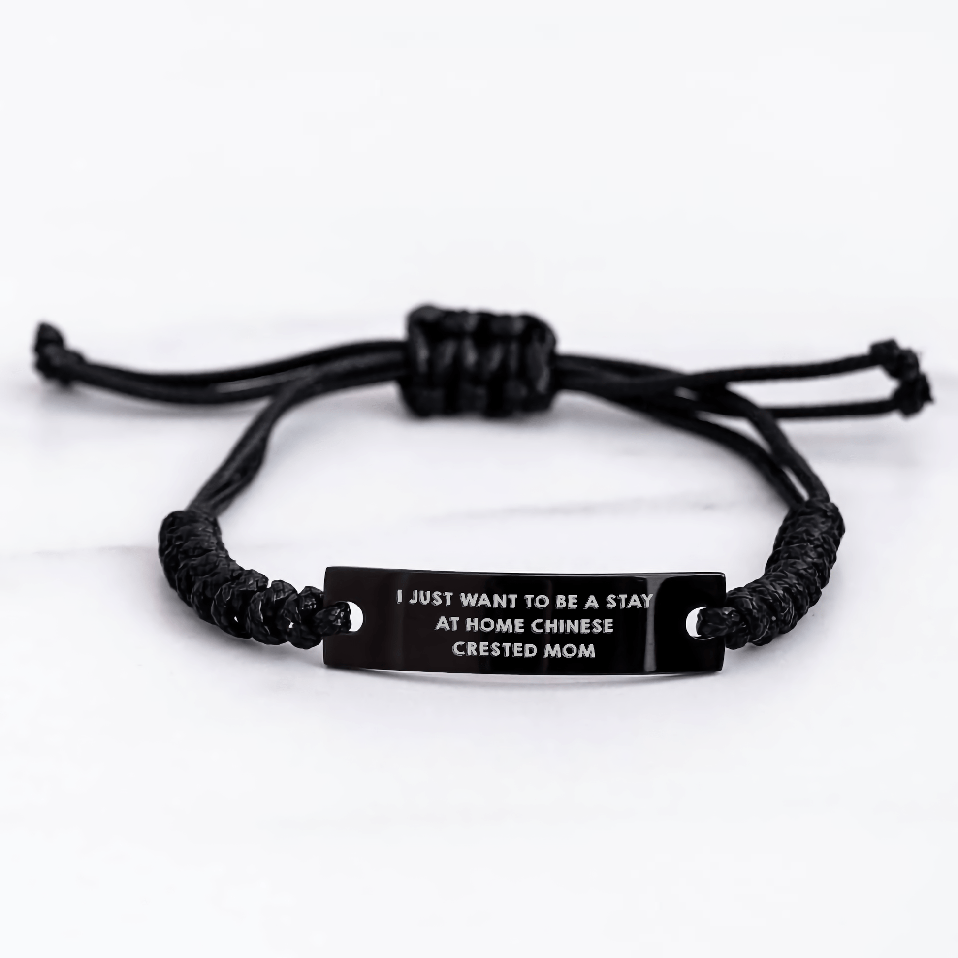 - Esta pulsera de cuerda es el regalo ideal para cualquier entusiasta de los perros crestados chinos y presenta la divertida cita "Solo quiero ser una mamá crestada china que se queda en casa".