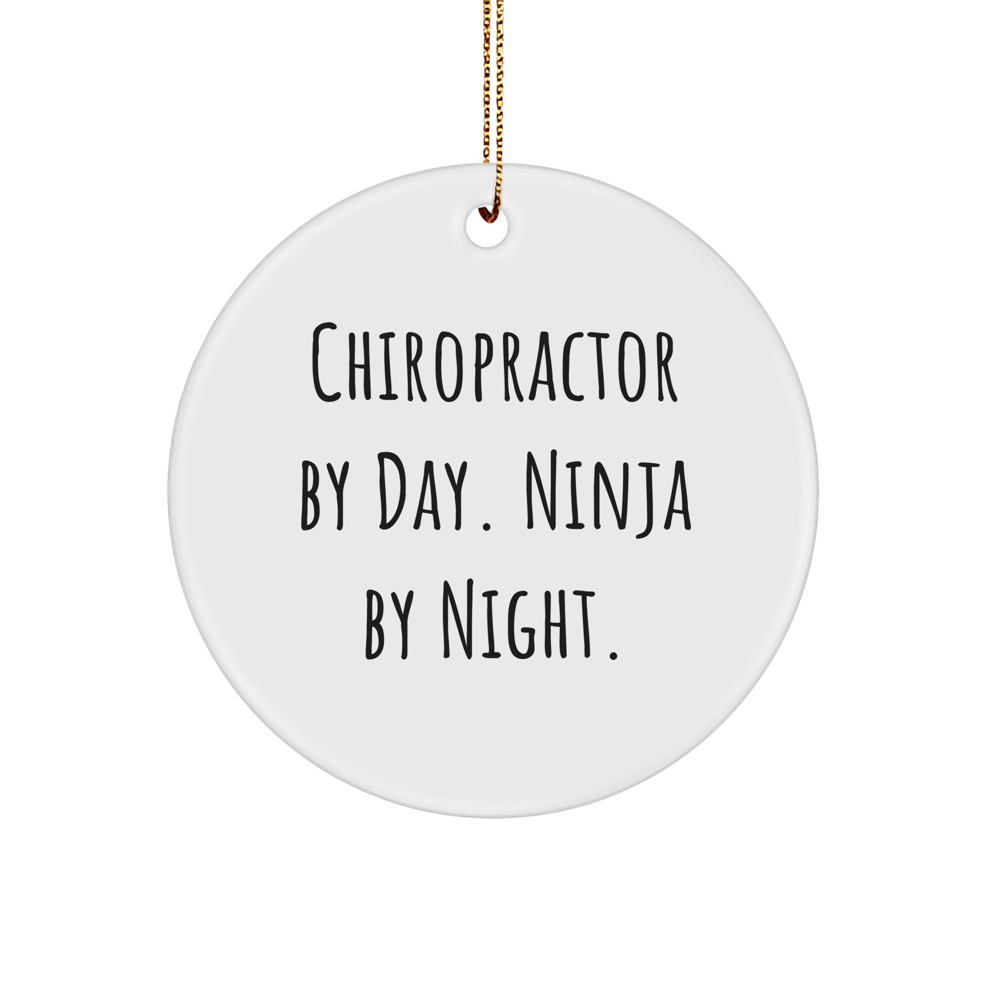 - Agregue un toque de humor y fantasía a la decoración del consultorio de su quiropráctico con este adorno circular, que presenta la cita "Quiropráctico de día. Ninja de noche".