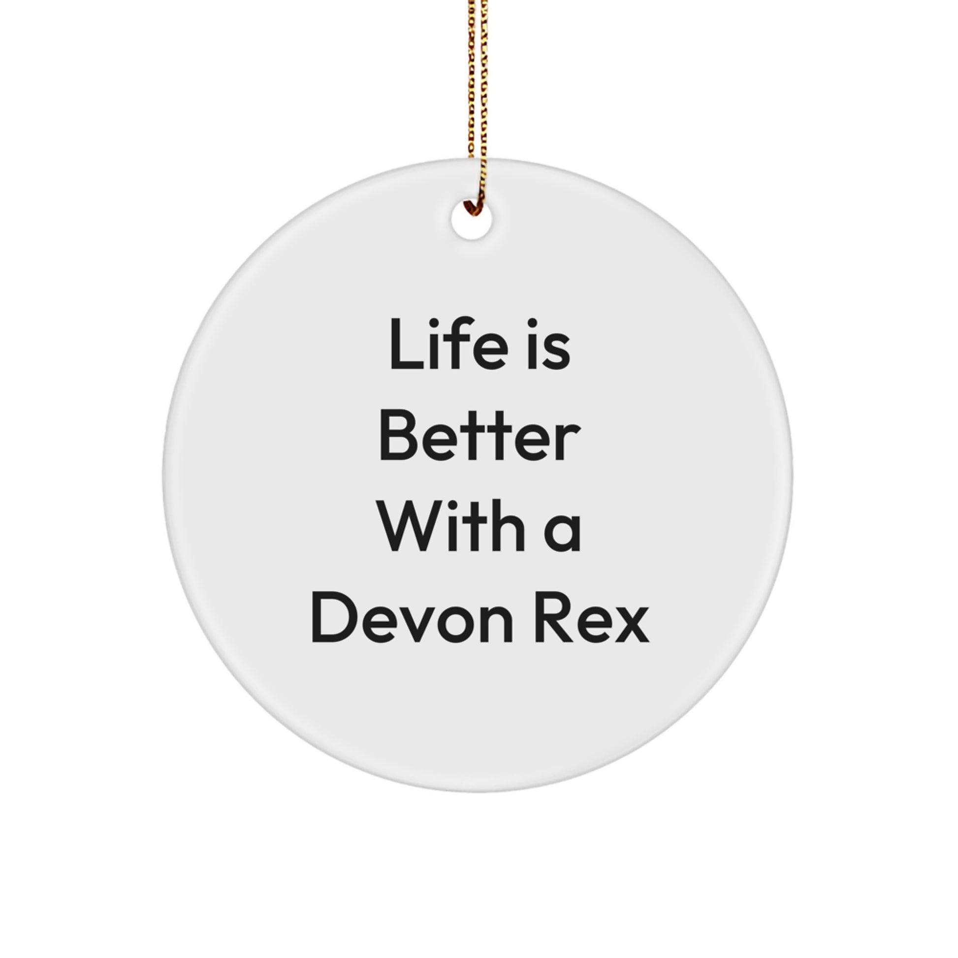 - La cita "La vida es mejor con un Devon Rex" es una forma divertida y peculiar de expresar tu amor por estos adorables gatos, y el cordón dorado festivo hace que sea fácil de colgar y decorar.