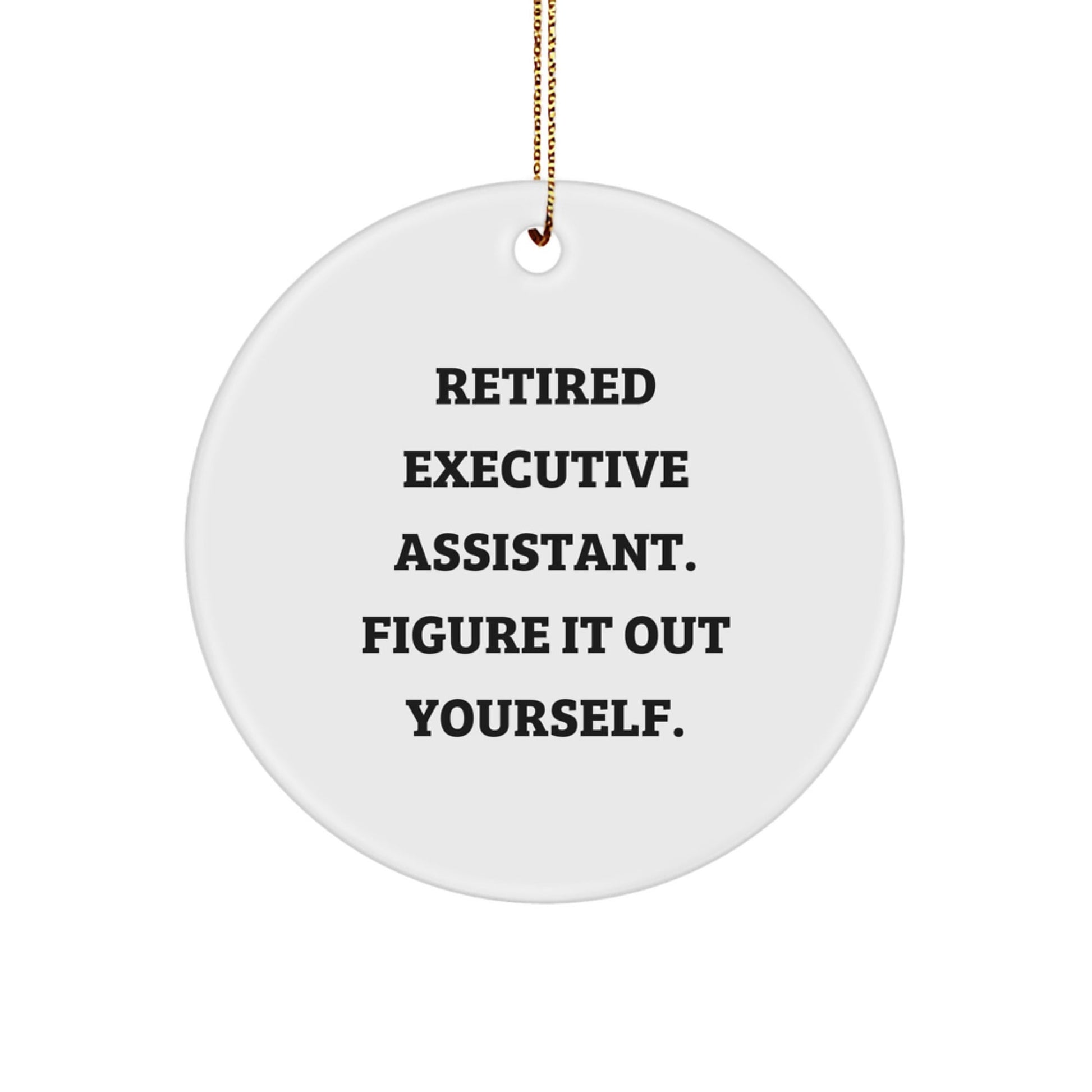 ¿Buscas un regalo único para tu asistente ejecutivo o un detalle especial para un compañero de trabajo que disfruta de las risas? ¡No busques más! Nuestro adorno circular es la manera perfecta de demostrar tu agradecimiento por su arduo trabajo y dedicación. Con su divertida frase: "Asistente ejecutivo jubilado. Descúbrelo tú mismo", este adorno seguro que le sacará una sonrisa.