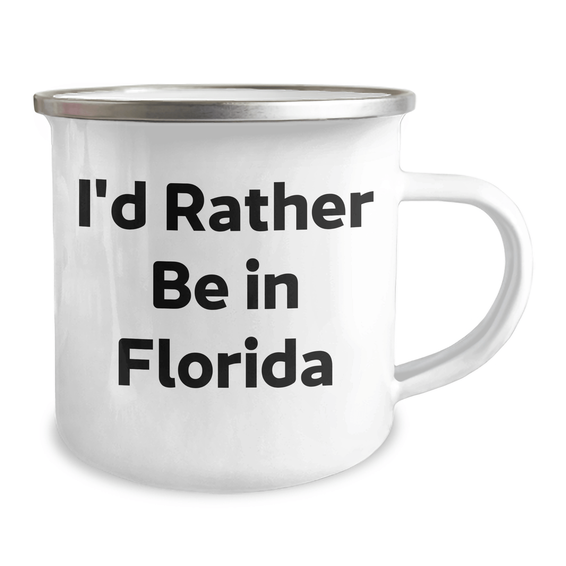 - Agregue esta taza de camping "Preferiría estar en Florida" a su carrito hoy y alegre un poco el día de alguien.