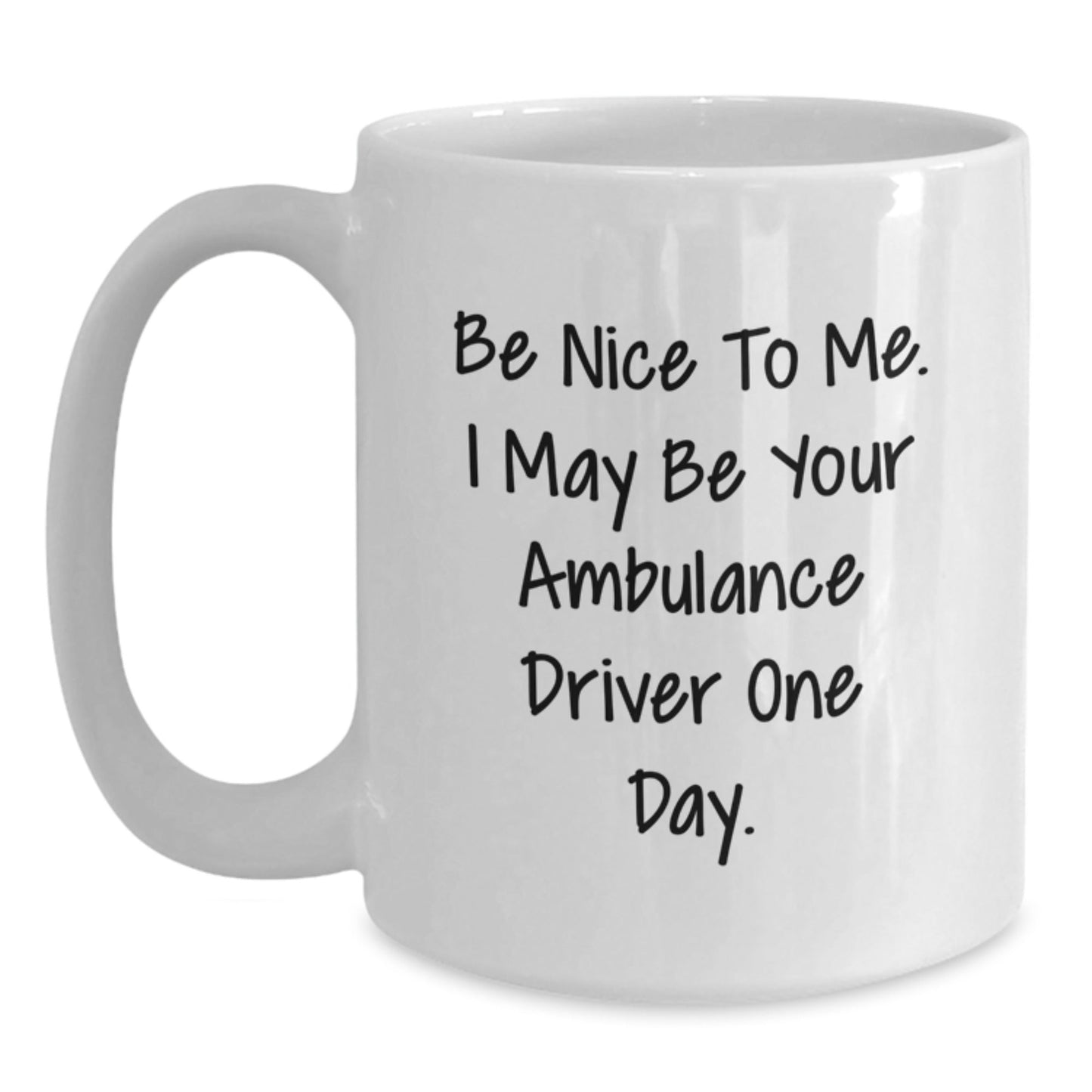 - Un regalo único y divertido para los amantes de los conductores de ambulancia, con la frase "Sé amable conmigo. Quizás algún día sea tu conductor de ambulancia".