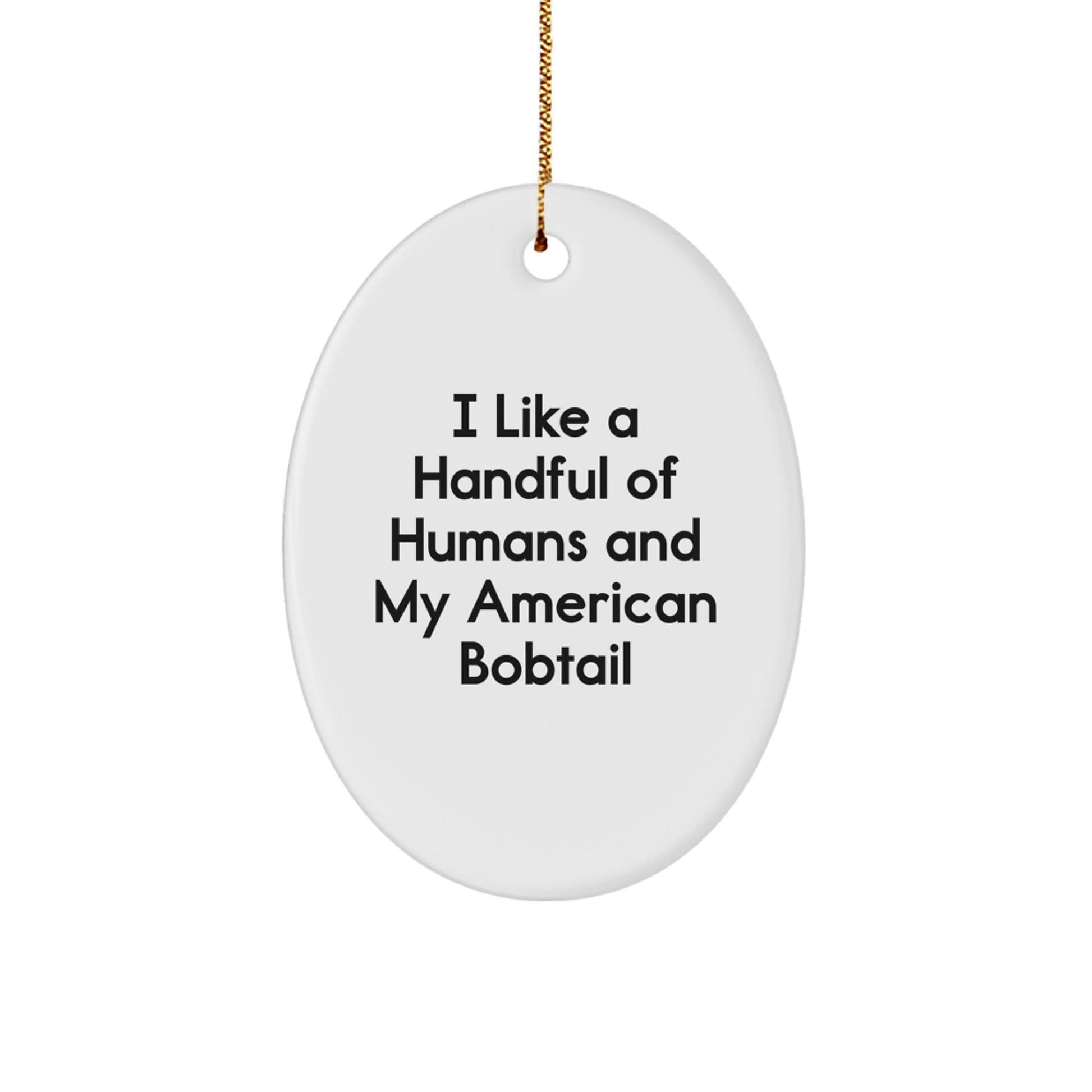 - Un regalo único y considerado para los amantes de los gatos Bobtail americano, que incluye la frase "Me gustan un puñado de humanos y mi Bobtail americano" en una fuente divertida y lúdica.