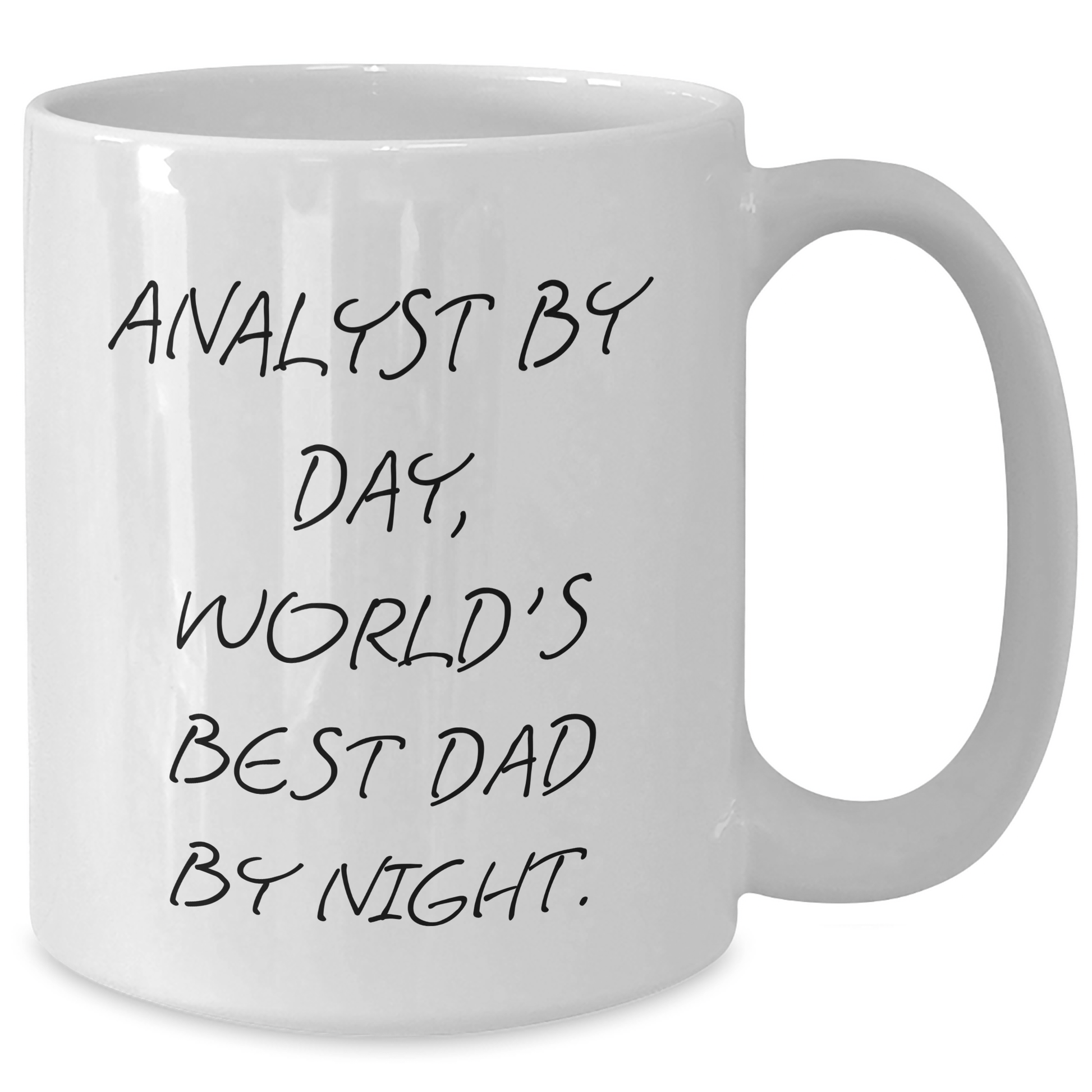 Esta taza no solo es una gran idea para regalar, sino también una forma única y atenta de demostrar tu aprecio por el analista en tu vida. El diseño está inspirado en la frase "Analista de día, el mejor padre del mundo de noche" y seguro que le sacará una sonrisa. ¿A qué esperas? ¡No te la pierdas y alégrale el día!
